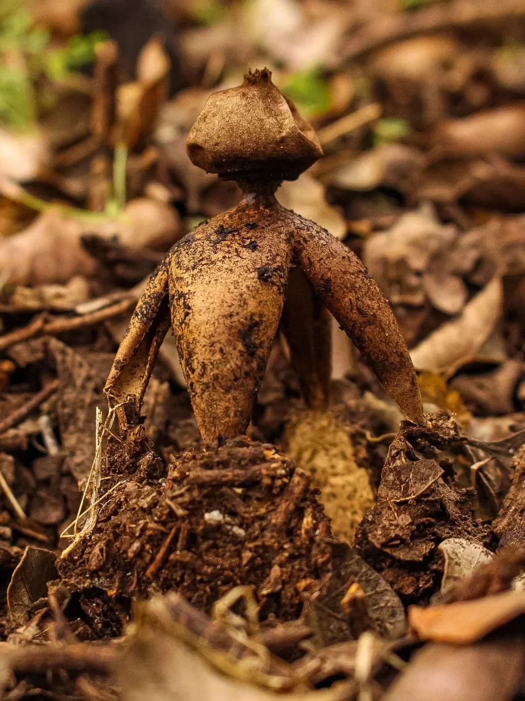 Geastrum fornicatum es un hongo gasteroide inconfundible por su forma estrellada y su arquitectura “acrobática”.